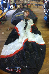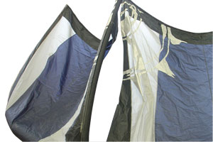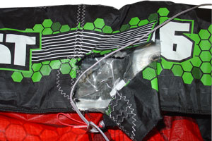 Sometimes the damage is internal and can't be seen. We got this Spleene X-19 (19m foil/twinskin) with 10 blown internal baffle walls and 7 V Ribs. We got this big guy back together and flying again. The repairs are guaranteed for life. |